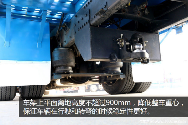 在动力组成上,新M3000车辆运输车还是配备潍柴+法士特+汉德的经典动力搭配。这款车的亮点在于车架上平面离地高度不超过900mm,降低整车重心,整车行驶稳定性更好,消声器、储气筒、油箱等车架附件模块化设计,保证主车及中置轴挂车离地间隙更大,通过性更强。