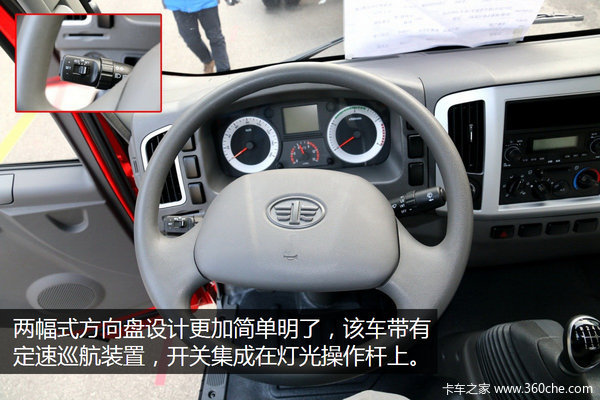 内饰点评:J6F的驾驶室很宽敞,宽体驾驶室不会带给驾驶员空间上的局促感,可折叠的座椅和宽大的卧铺可以同时满足两人休息,这对于跟着时间和地区大跨度运输收割机的驾驶员来说非常实用。