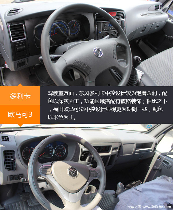 在外观和驾驶室部分,两款车都严格依照法规要求,配备有各项安全配件。唯一不同的地方就是两个品牌对车辆设计的差异了,卡友可以依照自己对品牌的喜好来对车辆进行选择。