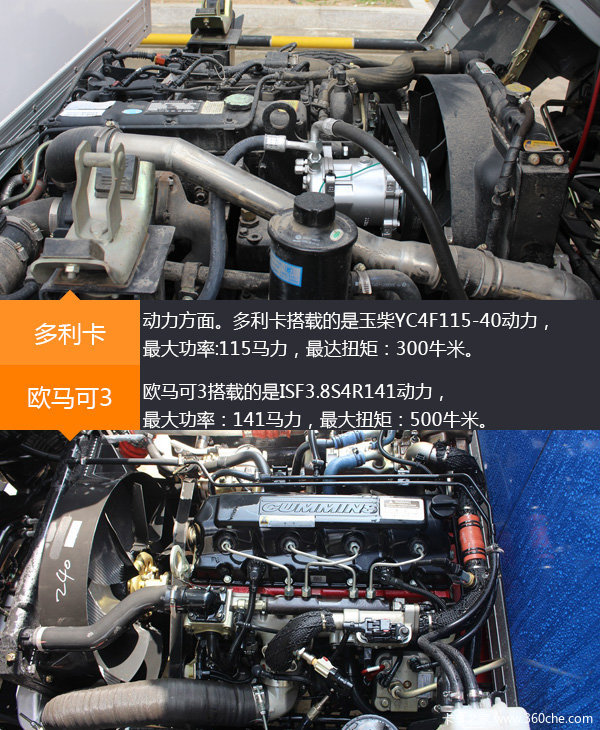 在外观和驾驶室部分,两款车都严格依照法规要求,配备有各项安全配件。唯一不同的地方就是两个品牌对车辆设计的差异了,卡友可以依照自己对品牌的喜好来对车辆进行选择。