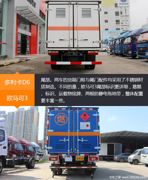 东风和福田能够在专用车市场做到举足轻重,车辆性能的稳定与上装品质的可靠无疑是关键因素,上装与底盘一体化的售后保养服务更是大大减少了用户的使用成本。在4.2米蓝牌危运车中,多利卡D6与欧马可3均有较高产品竞争力。(图/文 李海贤)