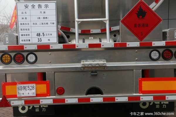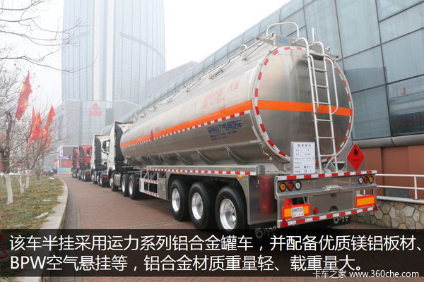 该车半挂柳州运力专用车生产的铝合金罐车,并配备优质镁铝板材、BPW空气悬挂及铝合金轮毂,自重轻且载重量大,铝合金材质还可减轻油品的侵蚀,提高使用寿命。另外整车采用UG三维结构设计,自动化焊接方式,最大程度保证了罐体焊接的稳定性。