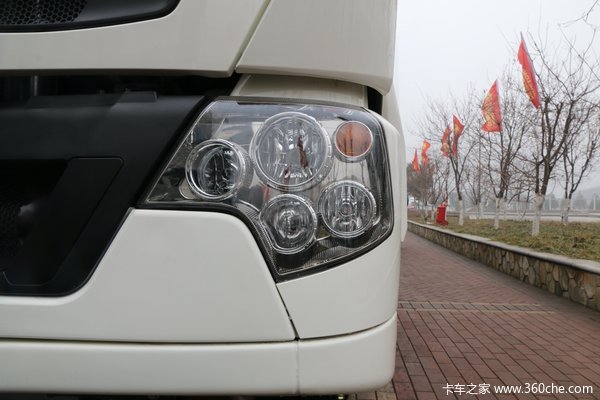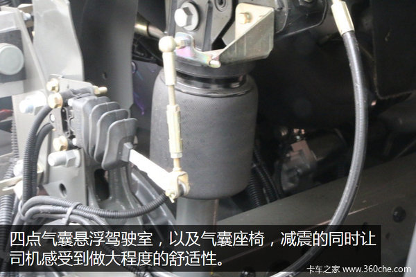 该车采用高地板高顶款驾驶室,内部空间可达1.9米,四点气囊悬浮驾驶室,以及气囊座椅,减震的同时让司机感受到一定的舒适性。再加上低风阻设计,还可有效降低油耗。