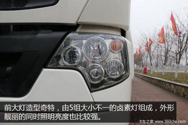T7H前大灯造型奇特,由5组大小不一的卤素灯组成,外形靓丽的同时照明亮度也比较强。