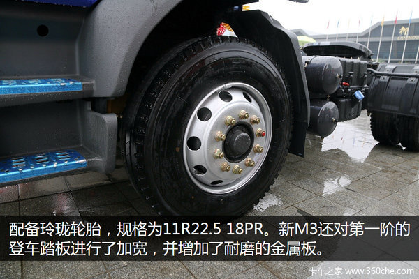 新款M3同样采用的是东风153后桥,与其他车型的后桥相比有着较高性价比。不同的是后桥速比由老款的5.571变更为4.444。