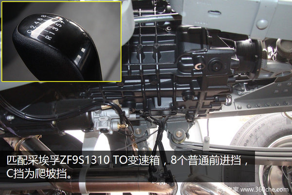 采埃孚9挡变速箱:匹配采埃孚ZF9S1310 TO 9挡变速箱,C挡为爬坡挡。