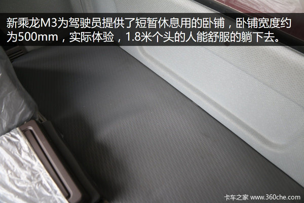 自柳汽乘龙H7推出后,车辆的舒适性就广受好评,新乘龙M3同样不例外,不止外观延续了H7的精华,驾驶室内一样如此,内饰采用双色搭配为驾驶员提供一个轻松愉悦的环境,多功能方向盘+人机工程仪表台减缓驾驶疲劳。M3为龙骨式框架结构驾驶室,并采用机械半浮式悬置,悬架则是少片式长板簧,为用户带来更舒适的行车体验。