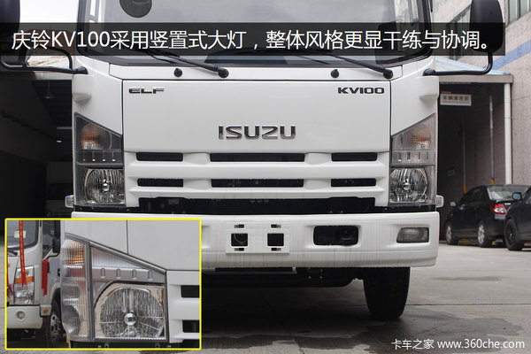 宽体驾驶室与庆铃K600设计相同,使KV100更像是K600的缩小版。竖置大灯、更平直的A柱设计让外观更加精致、驾驶室的空间更加富裕。此外,宽体版的导流罩与货厢宽、高呈水平状态,还能够为燃油经济性做出一定的贡献。