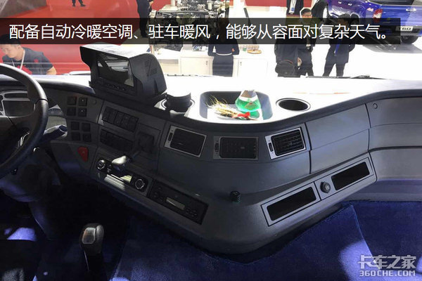 杰狮C500的配置在4X2级别牵引车里可算非常丰富。舒适性方面配备自动冷暖空调,驻车暖风,手动天窗等。