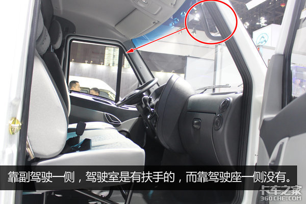 此外,现场我们注意到,靠副驾驶一侧,驾驶室是有扶手的,而靠驾驶座一侧没有。