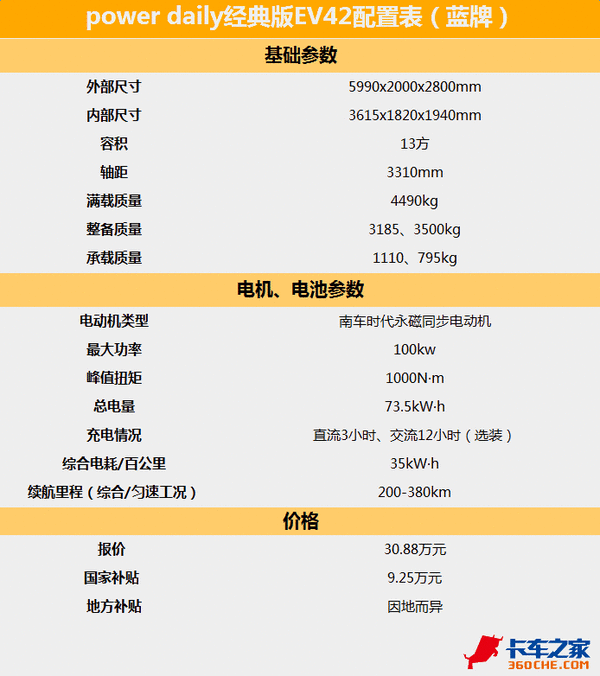 不考虑地方补贴的话,power daily经典版EV42裸车价21.63万元(30.88万-国家补贴9.25万)。这款车上蓝牌,C照以上都能开。随着城市对排放、限行的要求逐渐严格,电动车凭借无污染特性收到政策大力支持,将加速占据城配市场!(文/图 潘吉)