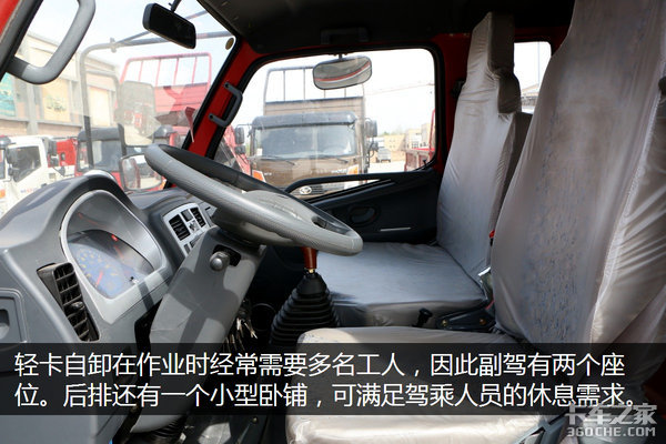 整个驾驶室内部采用黑色简约设计,比较耐脏,但是一些细节设计还可以更加优化,比如中控台的设计,手摇车窗等,在优化之后才能更加符合年轻一代驾驶员的要求。