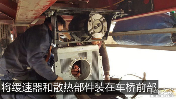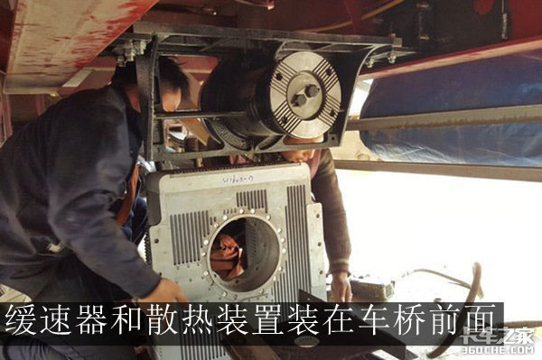 来卡车之家App【卡车之家 原创】说起液力缓速器,我们都知道它是安装在车辆上的一个安全设备,因为需要使用车辆自身的散热系统及传动系统的原因,液力缓速器大多都装在变速器后面,但你见过装在挂车上的液力缓速器吗?在挂车上怎么装?挂车没有驱动桥,液力缓速器怎么才能发挥作用呢?