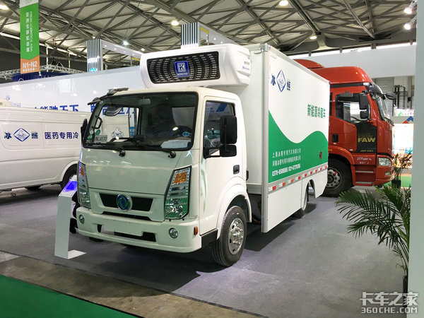 来卡车之家App【卡车之家 原创】受去年北方雾霭天气的影响,新能源物流车又一次成了大家讨论的焦点,今年很多城市更是出台了促进电动物流车推广的新政策。2017年5月17-19日,在上海举办的“亚洲生鲜荟”上,河南冰熊就展出了一款电动冷藏轻卡。该车作为一款4米2轻卡,配有两组电池总重690kg,整车自重达4900kg,在冷机运作的情况下,续航里程为250km。