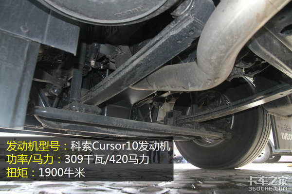 在动力配置方面,采用Cursor 10直列6缸柴油发动机,最大输出功率209千瓦、420马力,最大扭矩为1900牛米。虽然说,在国外产品公告上是欧五排放标准,但是这款车在国内仅仅是国四排放标准,主要的原因还是得归结于国内油品质量问题。