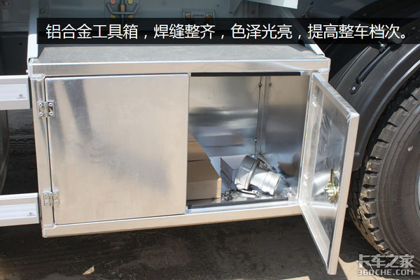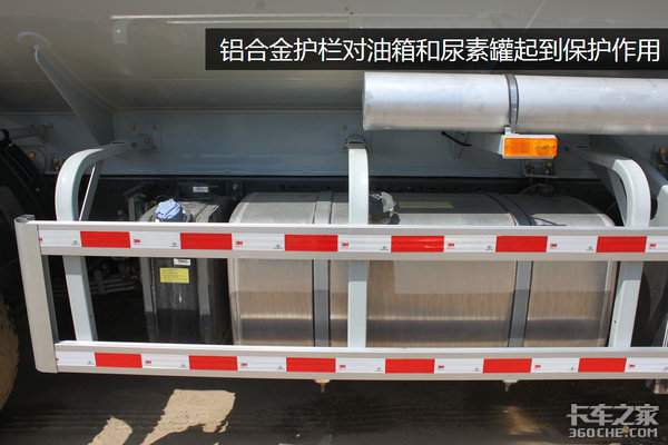 这台重汽HOWO T5G专为汽油运输设计改装,罐体、护栏、工具箱、后防撞梁等多处采用铝合金材质,轻量化不是通过牺牲性能和安全获取的,而是通过更先进的技术手段既保证强度又有效减轻自重,还极大地提升燃油经济性。虽然危险品运输车最高限速仅为80km/h,但是340马力的应用保证了车辆行驶的效率。并且自“新政”后铝合金成为了很多用户和车企的新宠,汽车材料的选取也在与时俱进。(文/图 管冠强)
