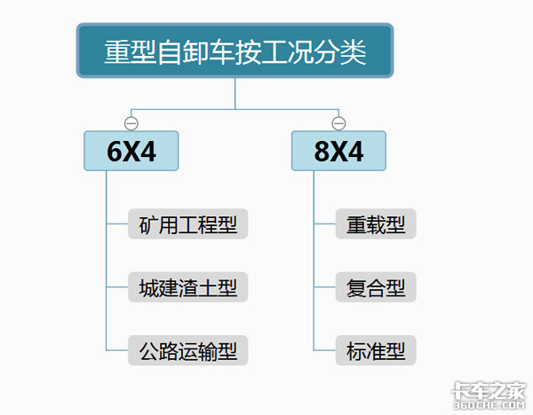 对于公路重型自卸车,可以按车辆使用工况再进行细分,因为在不同工况下,车的配置、尤其承载系统会有一定的差异。
