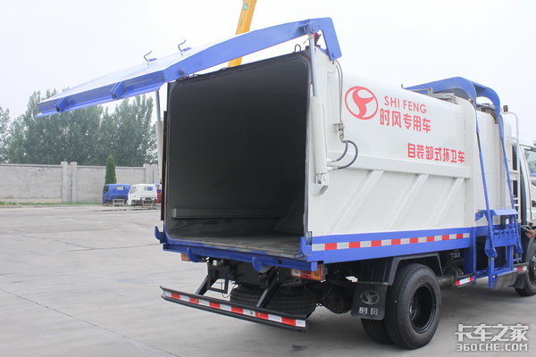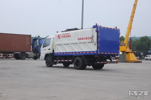 【卡车之家 原创】环卫用车,一直默默无闻地为城市的美丽整洁做着贡献,我们来看一辆时风自装卸式环卫车,看看它是如何自装自卸实现垃圾转运的。