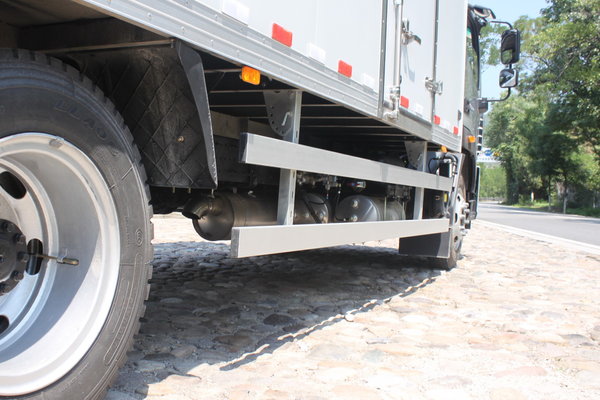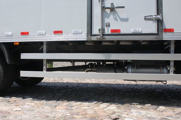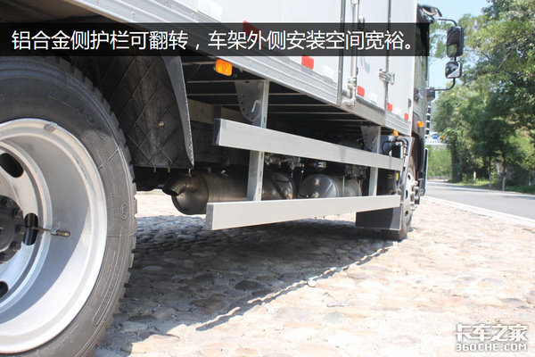 与上装一体的铝合金侧护栏可翻转式设计,在保养维护等需要钻入车底的时候大大提供方便。