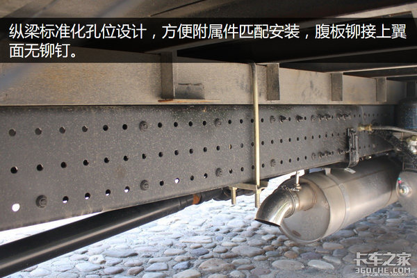 标准化孔位的车架纵梁,免去日后加装淋水箱等附件时自行打孔的麻烦,也避免了私自开孔对车架强度的影响。