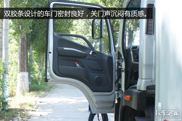 门徽代表车型系列和整车吨位等级信息,门把手下翻式开启,操纵十分轻便。