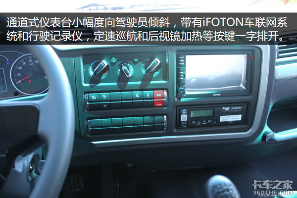 中控台向驾驶员方向轻微倾斜,右侧的设备操作起来更方便,S5超级中卡标配iFoton车联网系统 。