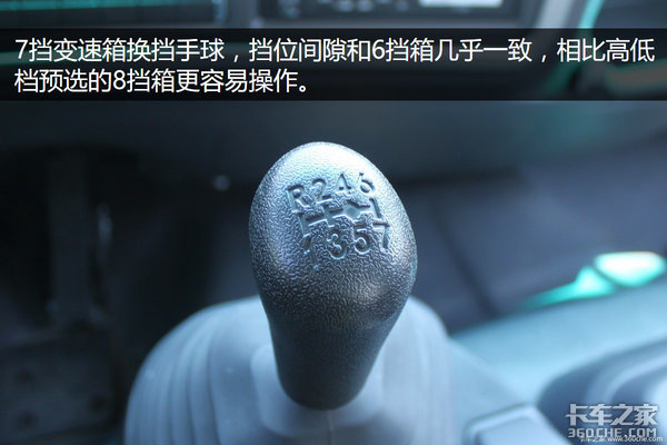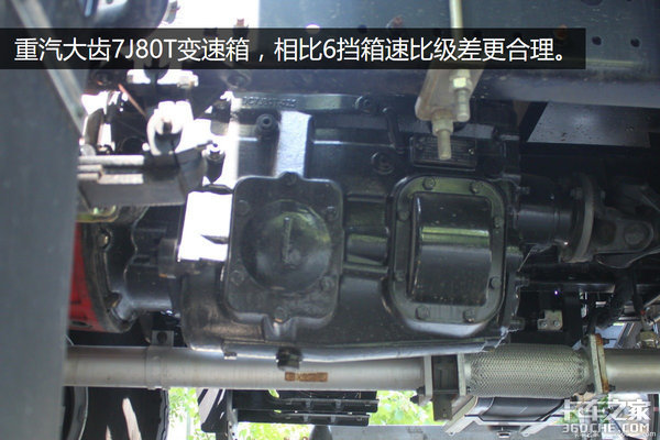 重汽大齿7挡箱,头挡速比7.41,操作起来比8挡箱更简便,速比级差比6速箱更细密,试驾后发现,这款箱子其实匹配在中卡上很合适。