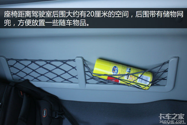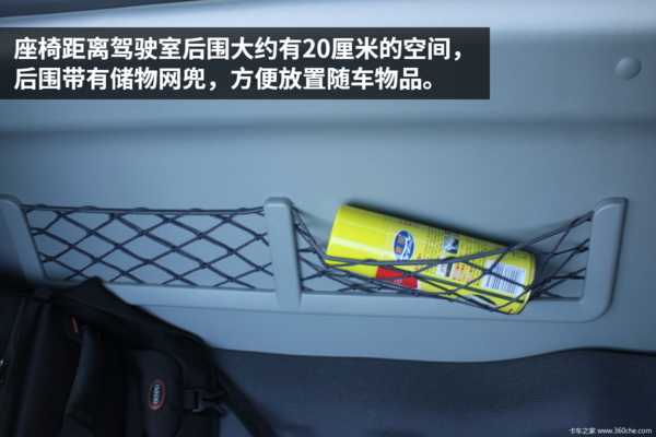 驾驶室后围距离座椅大约有30厘米的距离,这个空间放置一些随车物品还是很方便的。