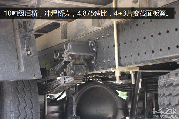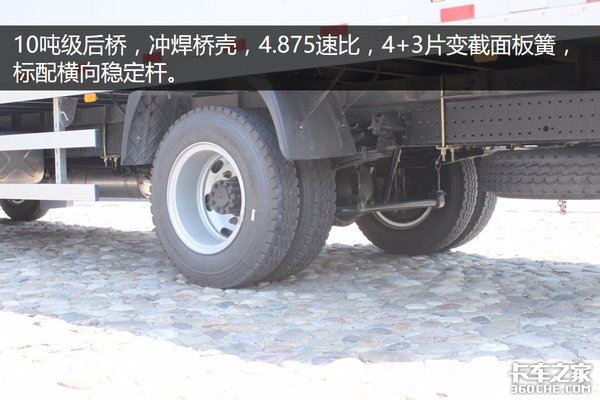 4.875算得上是四缸中卡的黄金后桥速比,能够在驱动力和巡航速度中取得一个平衡,后桥横向稳定杆在中卡中还不是一个普及的配置。