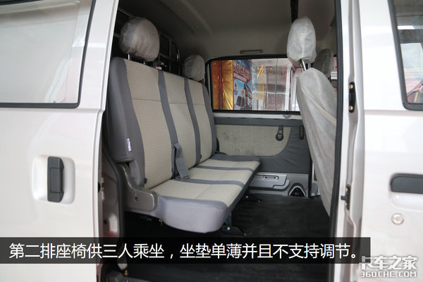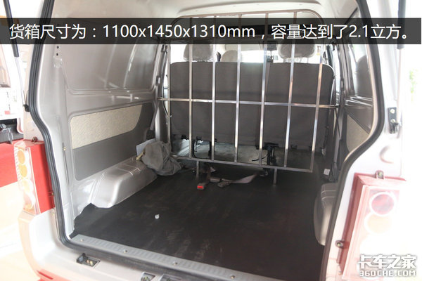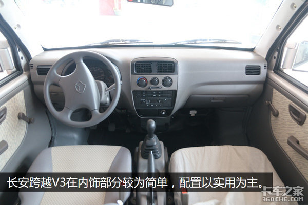在内饰部分,长安跨越V3完全是实用取向,没有太多花俏额的配置,不过就以3.68万的车身价来说,已经算得上是厚道了,配备了原厂的空调以及电助力转向,使驾驶的舒适性得到保证。实拍该车乘员舱采用2+3的设置,前两排为乘员座,取消了第三排座椅,取而代之的是一个容量为2.1立方的货箱,我们还能选择两座版的V3进一步提升货物装载量。