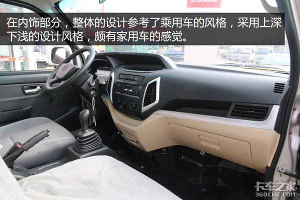 长安跨越万的内饰设计更偏向于家用车,没了以往微卡上的那种廉价感,并且在拼装工艺以及用料质感上都有较大的提升。在配置方面,收音机以及空调都是原厂标配,省去用户自行加装的麻烦,而其余方面则完全倾向于实用。