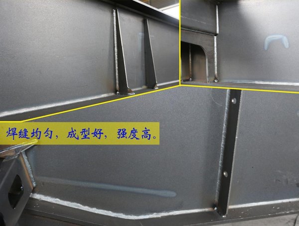 锣响一体式大梁:锣响骨架车纵梁采用整板下料,一体成型,钢板利用率低,废料多,成本较高,但中间无焊接,使得大梁强度高,重量轻,载荷能力更强,使用寿命更长。