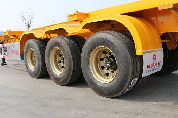 车桥可选用华劲/富华/BPW,可靠有保障,满足集装箱的运输需要。车轮为日上钢圈+固特异轮胎,全部为名优产品,可以为挂车的使用带来更好的使用效果。