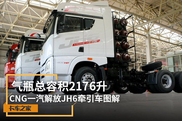 【卡车之家 原创】说起天然气卡车,大家最熟悉的就是最为普遍的LNG卡车了, 不过在新疆等地区,CNG天然气卡车也非常普遍。CNG卡车虽然自重要大于LNG卡车,不过CNG加气价要比LNG更低,所以一些气源充足的地区天然气卡车会选择CNG车型。近日,我就见到了一款CNG的一汽解放JH6牵引车。