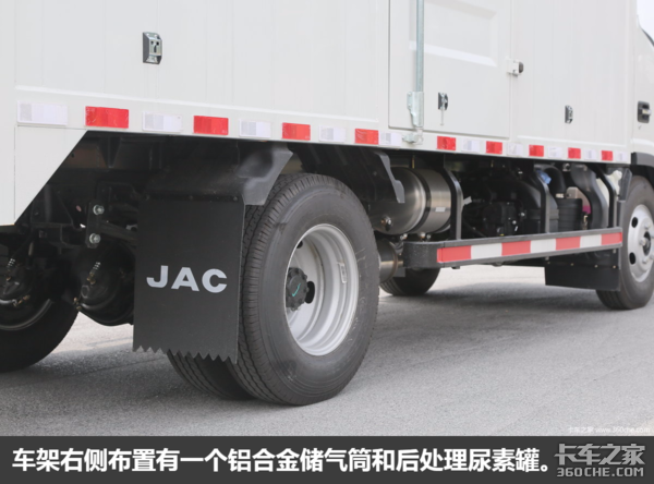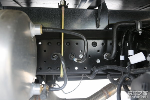 布置在车架右侧的后处理系统由博世提供,纯电动尿素泵无需辅助喷射气路。