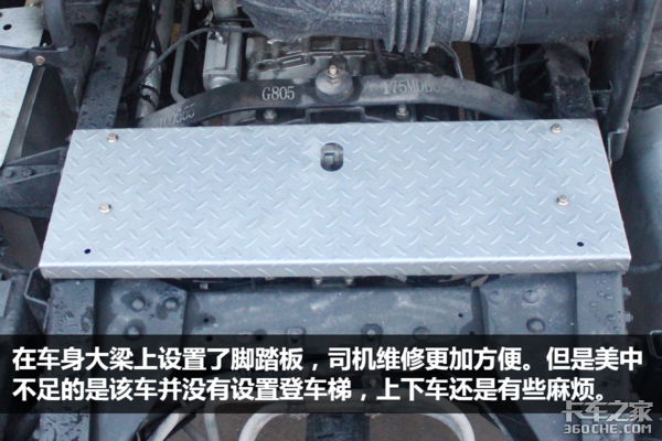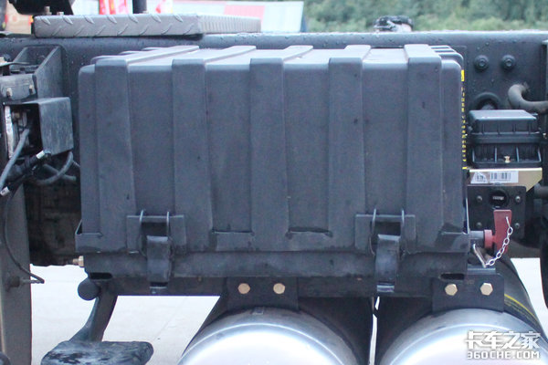 该车的电池、储气筒、尿素罐以及尾气处理系统全部集成在车身的左侧,结构设计的紧凑合理。