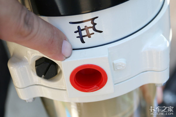 1000FH在集水杯的下方设置了排水阀,可以及时排除燃油中过滤掉的水分,集水杯上面的英文标签标注了排水阀的开关方式,如果卡友们看不懂,就只需要记住,顺时针方向就是打开排水阀,逆时针就是关闭。
