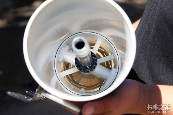 透过集水杯可以看到滤清器内部的构造采用旋流的结构,进入滤清器内的燃油会在离心力的作用下,将燃油中的杂志进行分离,过滤到集水杯中。