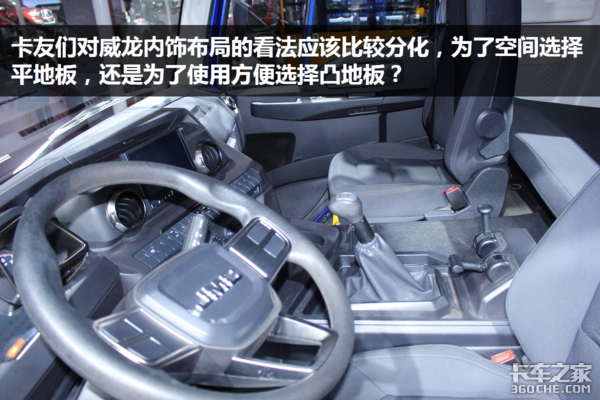 威龙的内饰优点,360度可调节空调出风口、两侧车门下方的观察镜等设计在国产重卡领域可以说是创新性的,大灯高度调节旋钮、卧铺阅读灯等设计也非常人性化,原来,威龙除了长的好看还是有点内涵的!