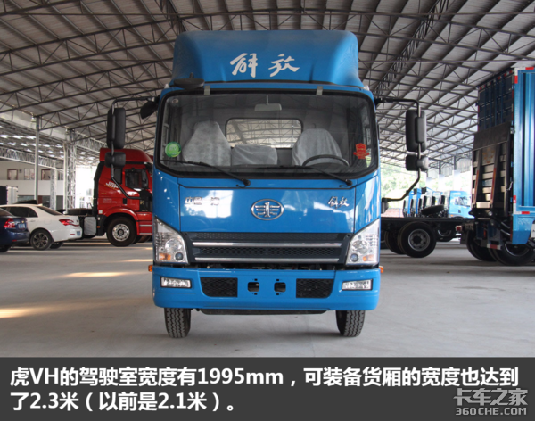 解放虎VH是宽体的车型,由于它能装备更宽更大的货厢,所以是主流用户的选择。该车最新的公告显示,现在匹配的货厢(内部尺寸)宽度扩展到2.3米,高度也同样可达2.3米,容量足足有22.27立方米,是真正的大方量货厢。