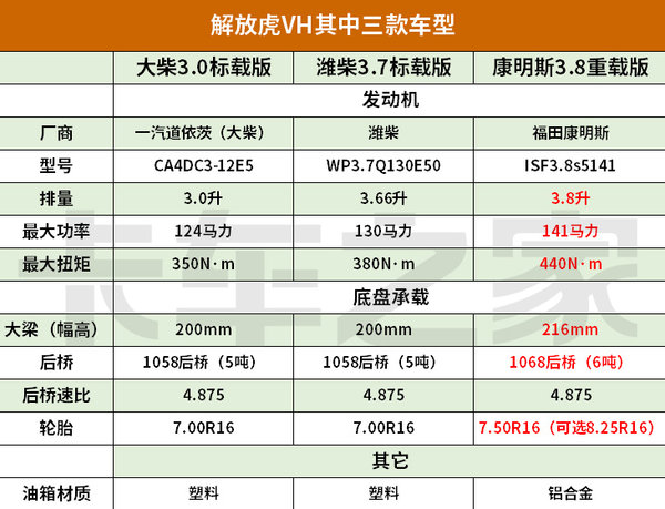 据了解,原来这是一台重载版轻卡,除了使用康明斯3.8L大马力的发动机以外,在底盘配置上也有相应的升级,使得车辆的载重能力更强。下面我们就来看一下重载版的虎VH有些什么升级。