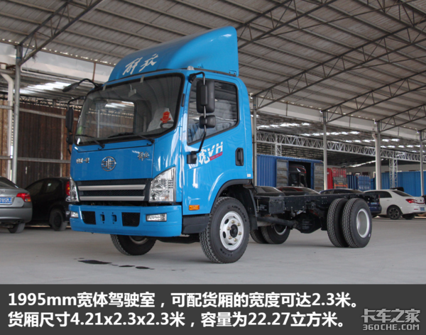 首先说一下几款动力车型的相同点。虎VH拥有同样的宽体驾驶室,可装配2.3米宽的货厢,货厢具体尺寸(内尺寸)为4.21x2.3x2.3m,容积约22.3立方米,绝对是大容量的货厢。