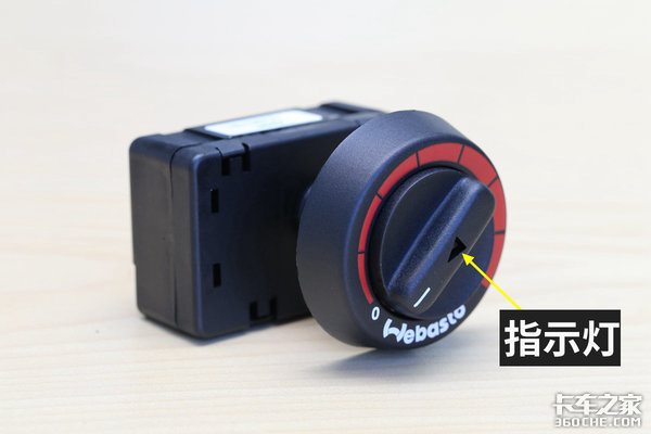 这个东西了解伟博思通的卡友都认识,它是加热器的控制开关总成。旋钮中间的小三角是指示灯,正常使用的时候常亮;发生故障的时候会闪烁,闪烁的频率代表了不同的故障类型,可以帮助你判断故障原因。