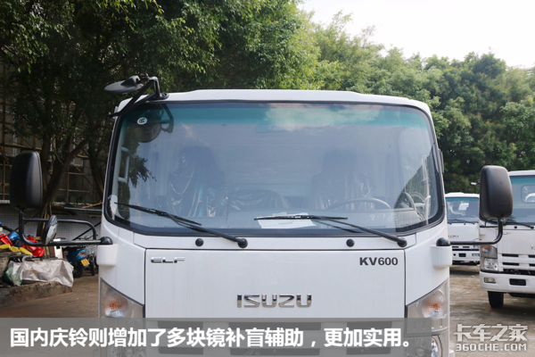 庆铃K系列为宽体车型(KV600比600P更宽),KV600可以说是庆铃蓝牌车里的顶配了。KV600的造型更接近于700P,外观是新款的,同时也保留了经典的设计元素,譬如立式大灯,整体维持了日本本土五十铃的风格。