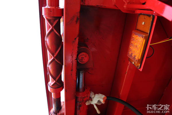 通过这种方式卸砂石或者煤炭的时候,车辆容易被陷在沙堆或煤堆里面“难以自拔”,挂车尾部的支腿可以帮助挂车脱困,这也是伟大劳动人民的智慧结晶。