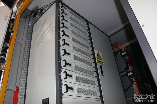 由于携带有大量的电池,这台补电车的充电机也具有一定的防尘、防水功能,防护等级为IP54,即保证侵入的灰尘量不会影响充电器材的正常运作,并且可防止被各方向飞溅而来的水侵入。
