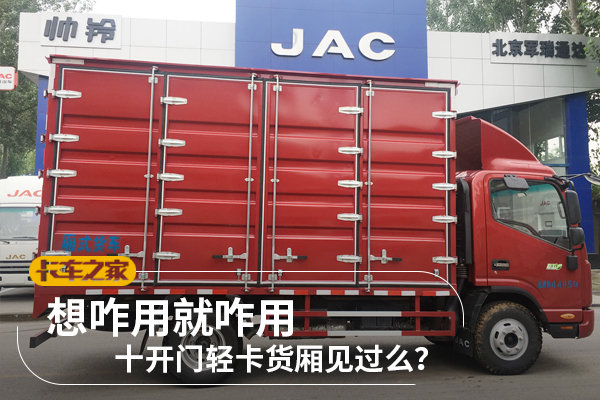 我们平时见到的一些轻卡货厢,大多数都采用尾部对开门或者侧面开门的设计。近日我在走访北京顺义马坡汽车城的时候,实拍了一款轻卡货厢,为了提升装卸货效率和灵活性,采用了十开门设计,这在国内还非常少见。