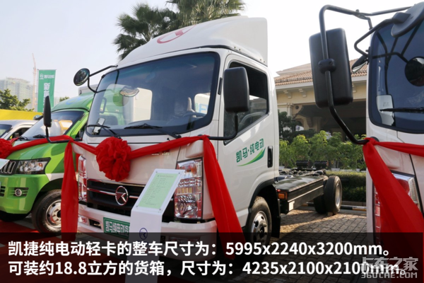 根据公告上显示,凯捷纯电动轻卡的总质量为4495kg,载质量为995kg,可上蓝牌。而在外观与货箱方面,这款车与普通的4米2燃油轻卡并没有太大的区别,但它却具有不限行不限号的优势,在限牌限号的城市里面优势突出,是传统柴油轻卡无可比拟的。