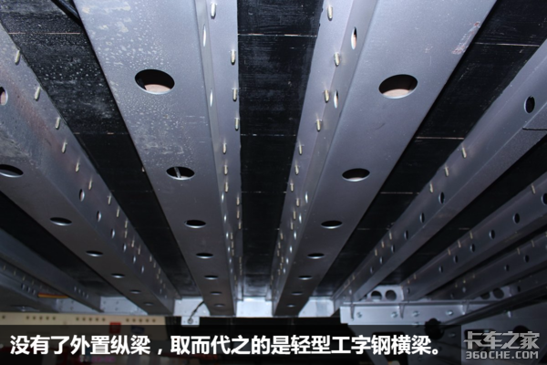 纵梁虽然内置,但是底盘的承重能力还要得到保证,而贯通式工字钢横梁则比焊接式衡量强度更高。