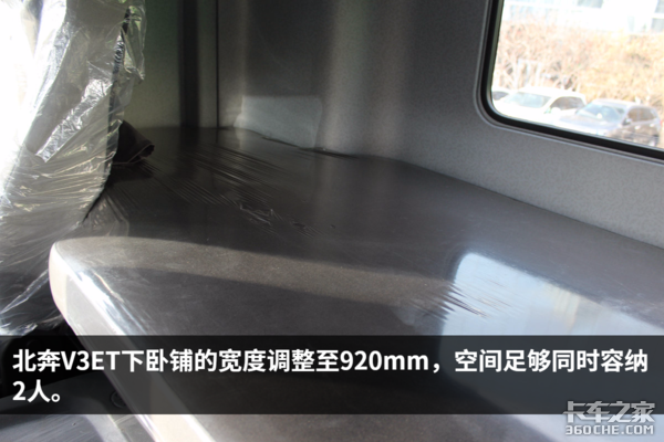 对于国内的卡车司机来说,一张宽大舒适的卧铺是梦寐以求的。北奔V3ET驾驶室内衬后移120mm,下卧铺的宽度调整至920mm,空间足够同时容纳2人,司机长途行车后在车上休息将更为舒适。